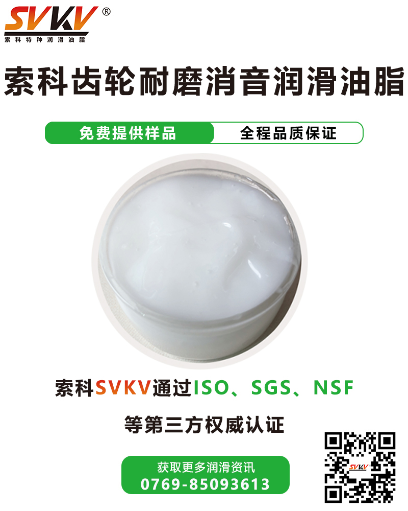 廣東索科潤(rùn)滑油有限公司是一家致力于裝配產(chǎn)品使用特種潤(rùn)滑脂的研發(fā)、生產(chǎn)、定制、服務(wù)為一體的專業(yè)性石化企業(yè)。致力為制造業(yè)客戶,提供專業(yè)的選油方案,協(xié)助客戶解決產(chǎn)品裝配時(shí)的潤(rùn)滑難題,還可根據(jù)客戶特殊需求訂做適合的潤(rùn)滑油品。有效提高產(chǎn)品性能、減低維護(hù)成本,索科助力制造業(yè)高端化發(fā)展! 主要產(chǎn)品有: 齒輪消音潤(rùn)滑脂|高溫潤(rùn)滑脂|食品級(jí)潤(rùn)滑脂|齒輪消音潤(rùn)滑脂|防水潤(rùn)滑脂 導(dǎo)電油脂|軸承油|硅油|干性皮膜潤(rùn)滑劑|低溫潤(rùn)滑脂|阻尼脂|全氟油脂