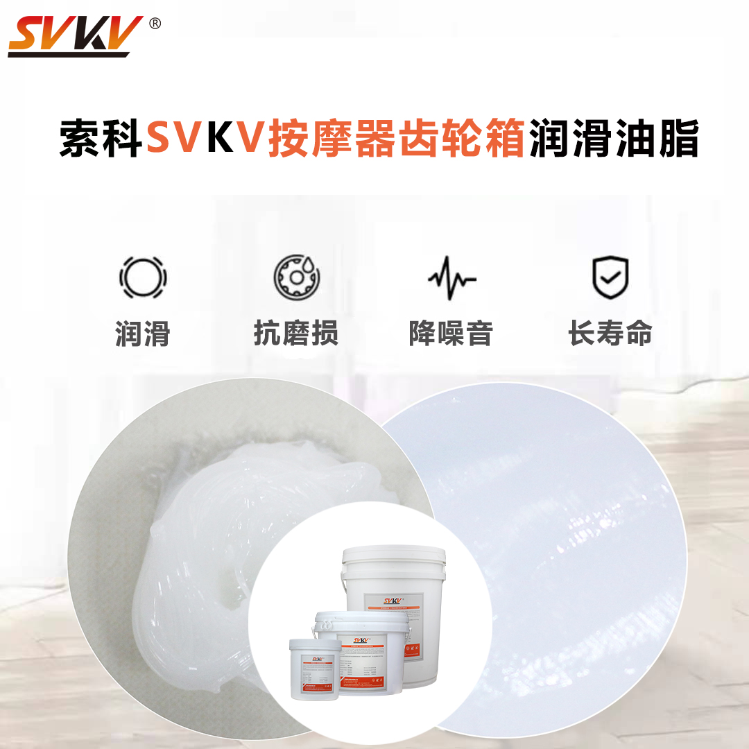 索科SVKV560按摩器齒輪箱潤滑油脂是選用高性能的基礎油,并加多種高效抗氧化、抗腐蝕等添加劑精制而成,是專為各種塑膠齒輪、金屬齒輪及傳動部位而研制的齒輪潤滑脂。能有效果的減少其齒輪磨損,降低噪音,達到長壽命的效果。